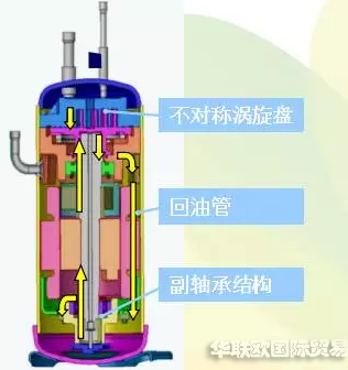 渦旋COPELAND壓縮機內(nèi)部的油路: