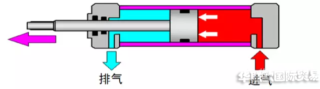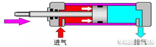 當(dāng)有桿腔進(jìn)氣,無桿腔排氣時(shí),使活塞桿縮回。若有桿腔和無桿腔交替進(jìn)氣和排氣,活塞實(shí)現(xiàn)往復(fù)直線運(yùn)動(dòng)。