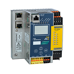 ASi-5/ASi-3網(wǎng)關(guān),帶有集成安全監(jiān)視器和最常用自動(dòng)化系統(tǒng)的接口。這提供了同時(shí)安全構(gòu)建一個(gè)或兩個(gè)ASi網(wǎng)絡(luò)的最有效方法。使用他們的以太網(wǎng)“安全鏈接”,一種通過以太網(wǎng)/Profinet安全連接多個(gè)網(wǎng)關(guān)的技術(shù),甚至可以實(shí)施具有多達(dá)1922個(gè)安全I(xiàn)/O的大型應(yīng)用程序。對(duì)于具有三個(gè)或更多安全信號(hào)的小型應(yīng)用,您應(yīng)該考慮安全基本監(jiān)視器,這是一款沒有網(wǎng)關(guān)但具有可配置狀態(tài)輸出的緊湊型安全控制器,該模塊允許通用擴(kuò)展,是特殊安全應(yīng)用的理想控制站。